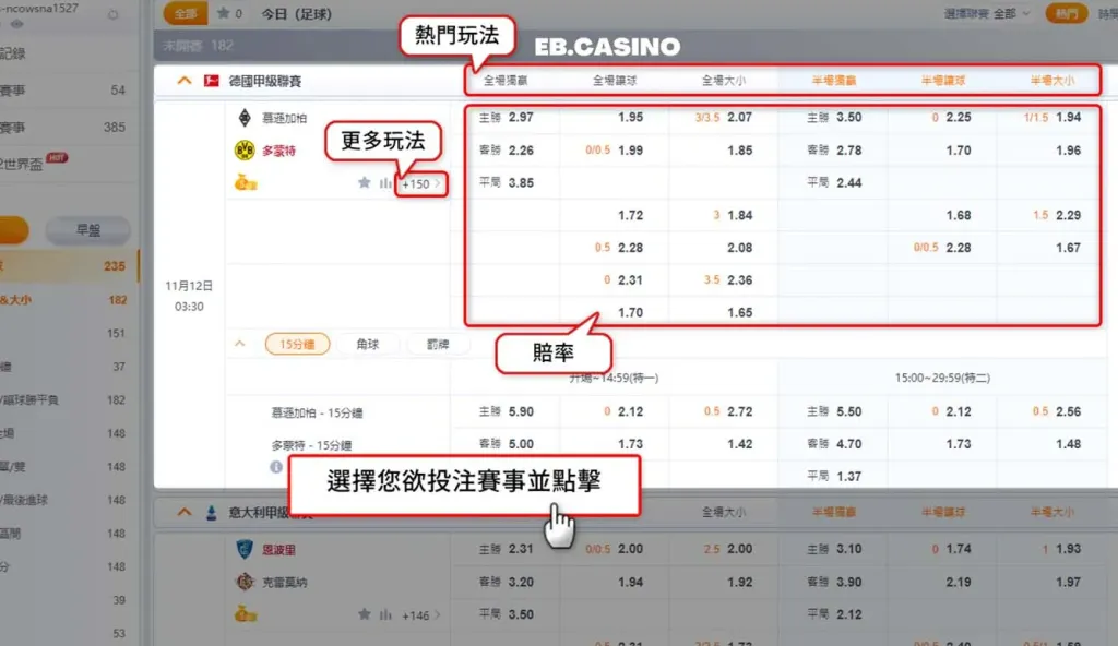 點選您要投注賽事項目