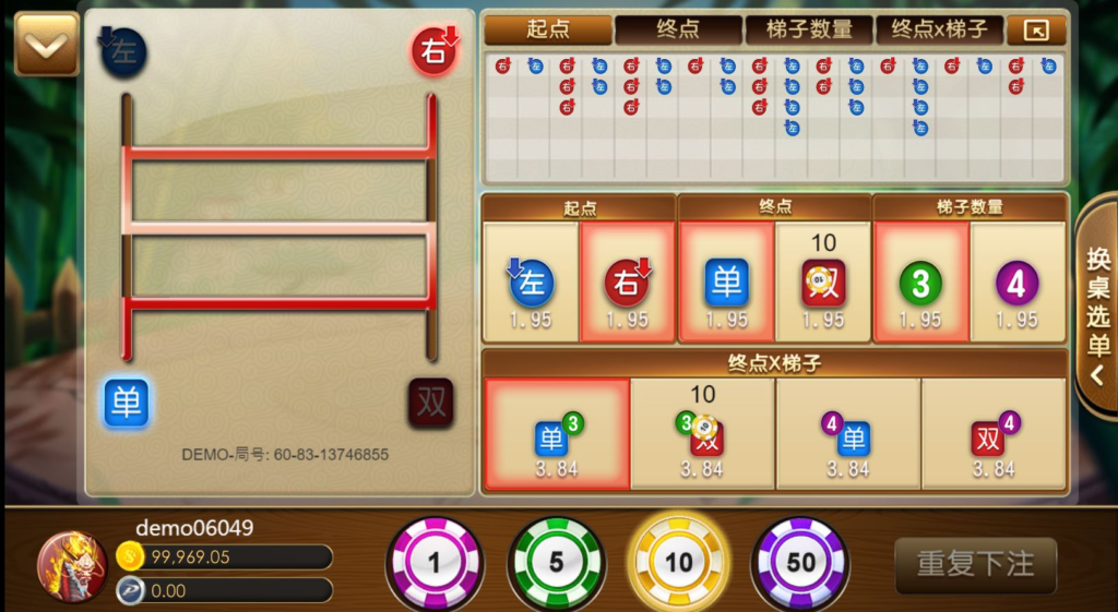 在梯子遊戲中,玩家可以根據自己的喜好和風險承受能力選擇不同的投注點。一般來說,賠付倍數較低的投注點風險較小,如單、雙或3條、4條梯子的投注。而選擇「單-3梯子」或「雙-4梯子」等複合投注點,則能獲得更高的賠付倍數,但風險也相對較高。因此,玩家在進行投注時需要根據自己的預算和策略進行合理選擇。