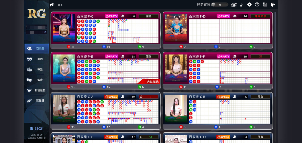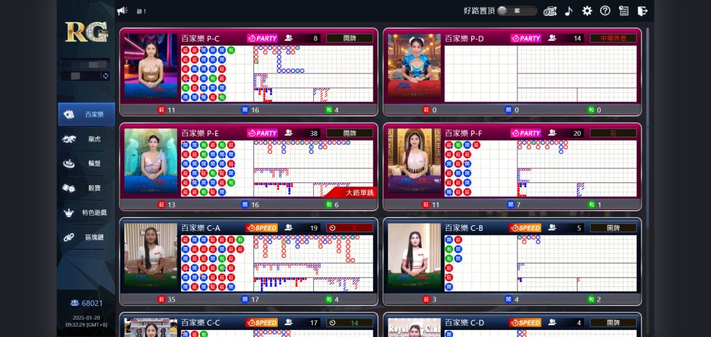 百家樂是皇家真人最受歡迎的遊戲之一。玩家可以下注於閒家、莊家或和局,遊戲使用8副牌,各家發兩張牌,根據點數大小決定勝負。百家樂還提供「閒對」、「莊對」、「完美對子」等額外投注項目,增加了遊戲的趣味性。