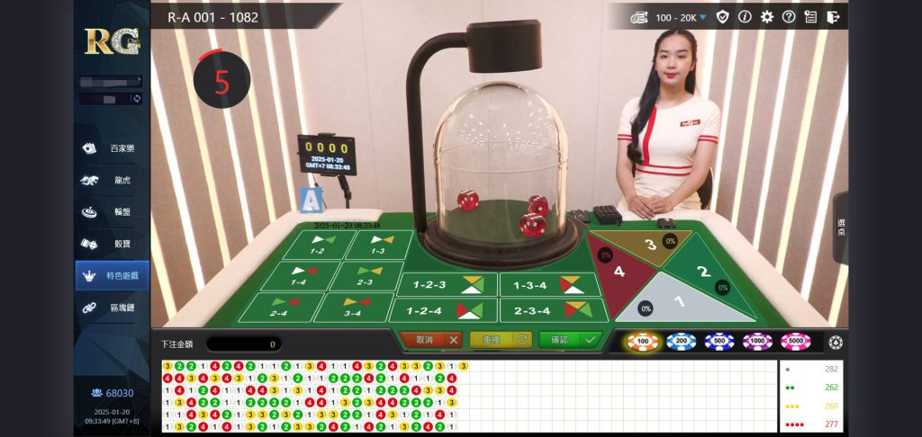 骰寶是一款經典的骰子遊戲,玩家可以下注於大小、單雙、圍骰等項目。遊戲使用三顆骰子,根據總點數決定勝負。圍骰的賠率高達1:150,吸引了許多喜歡高風險高回報的玩家。