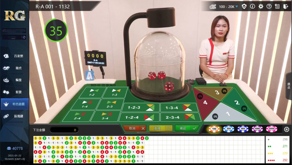 骰寶是一款經典的骰子遊戲,玩家可以下注於大小、單雙、圍骰等項目。遊戲使用三顆骰子,根據總點數決定勝負。圍骰的賠率高達1:150,吸引了許多喜歡高風險高回報的玩家。